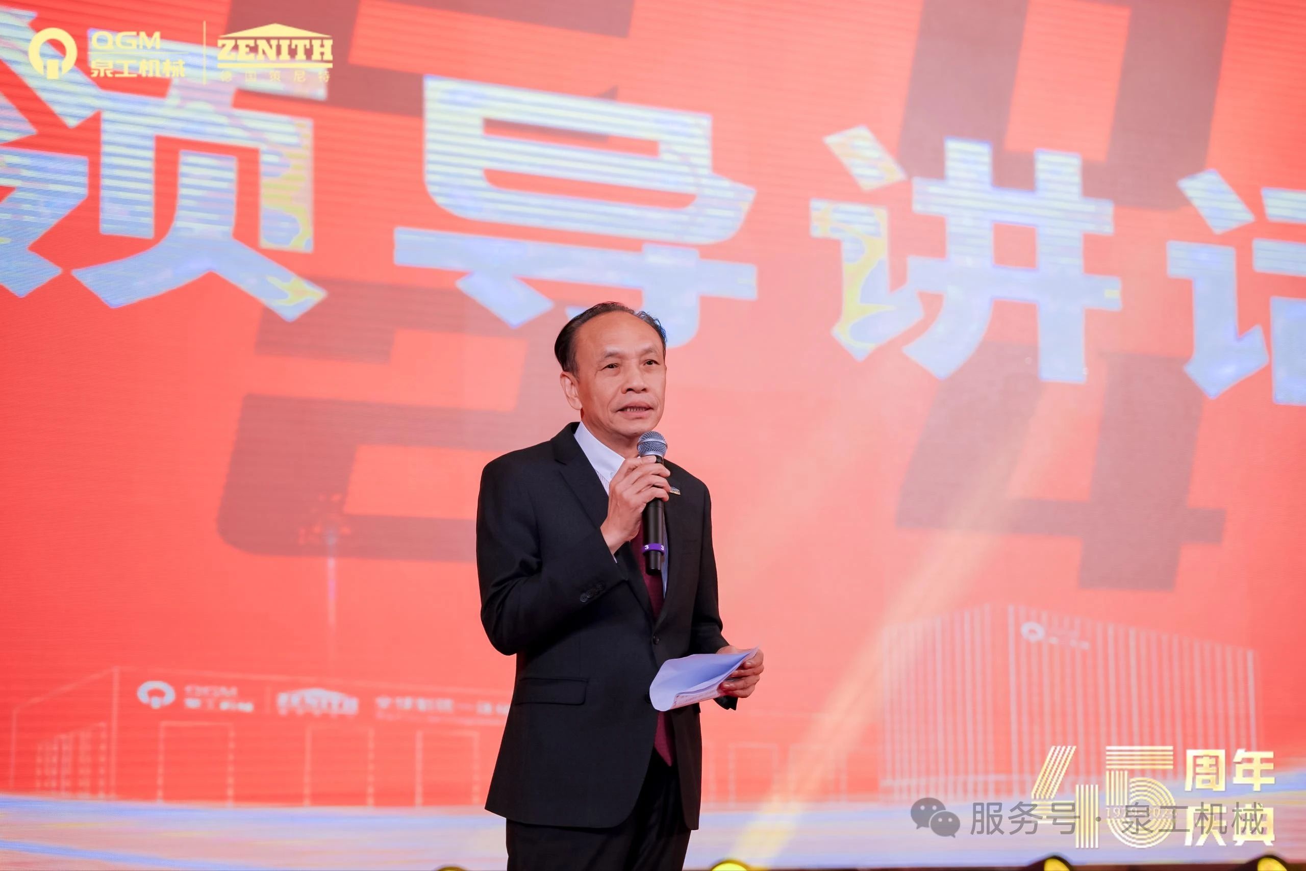 会上,泉工股份董事长傅炳煌发表了热情洋溢的致辞。他深情回顾了公司45年的发展历程,他表示,公司有今天,离不开在座以及此刻仍坚守在岗位的同仁们的共同努力。从最初的艰难创业,到如今业内的有口皆碑,每一步都凝聚着大家的心血与汗水。